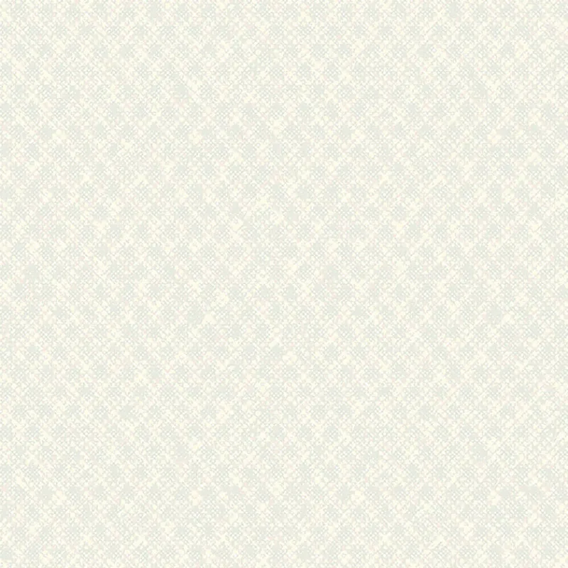 Metallic dots form a small-scale harlequin pattern over a soft diamond texture to create a subtle geometric design. Seafoam adds the barest hint of color to the white and silver print. Zoey is an unpasted, non woven wallpaper.