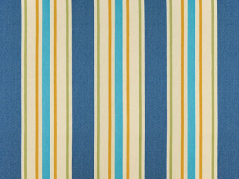 Cayman Cobalt is a fun bold blue, turquoise, bright green, and yellow striped outdoor fabric from Covington.