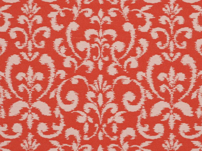 Cecita Salsa is a bright red damask patterned outdoor upholstery fabric from Covington.