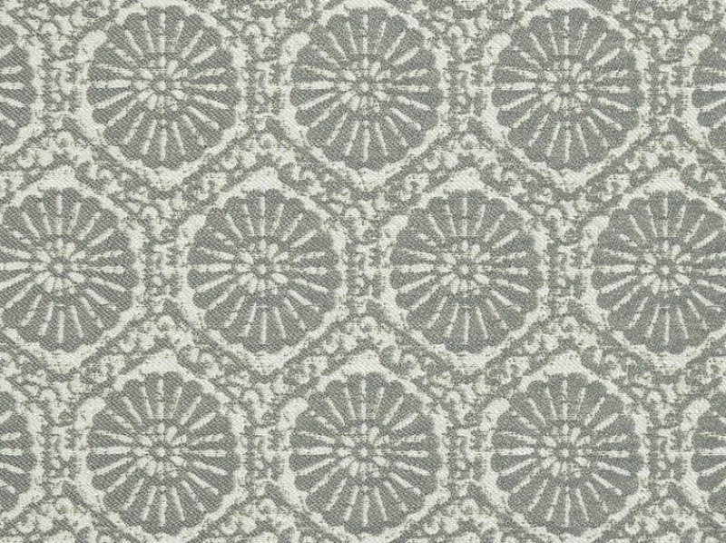 Fossil Smoke is a neutral grey geometric medallion patterned outdoor fabric from Covington.