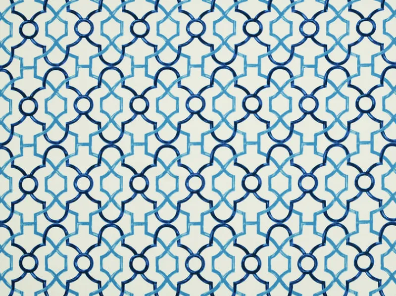 Integra Mariner is a pretty royal blue and light blue geometric scroll printed fabric from Covington.