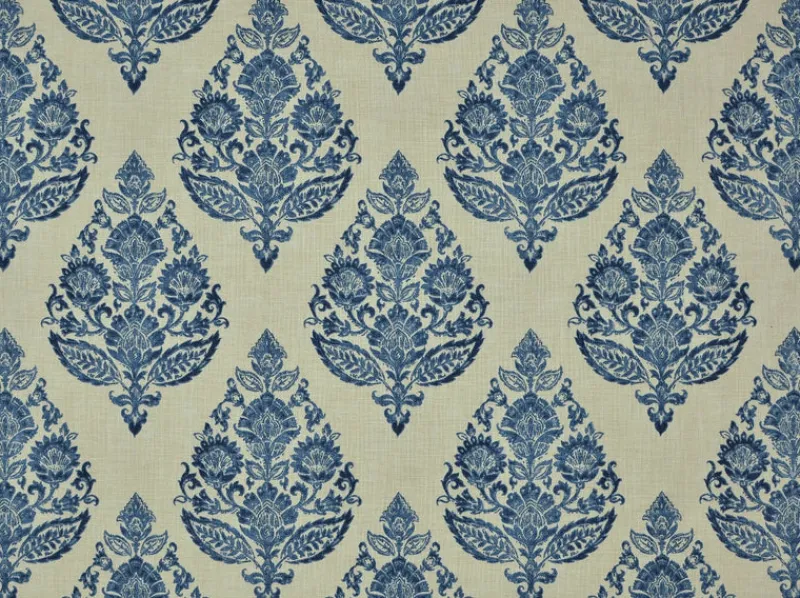 Lydia 519 Antique Blue Cream Blue Medallion Floral Covington Fabric