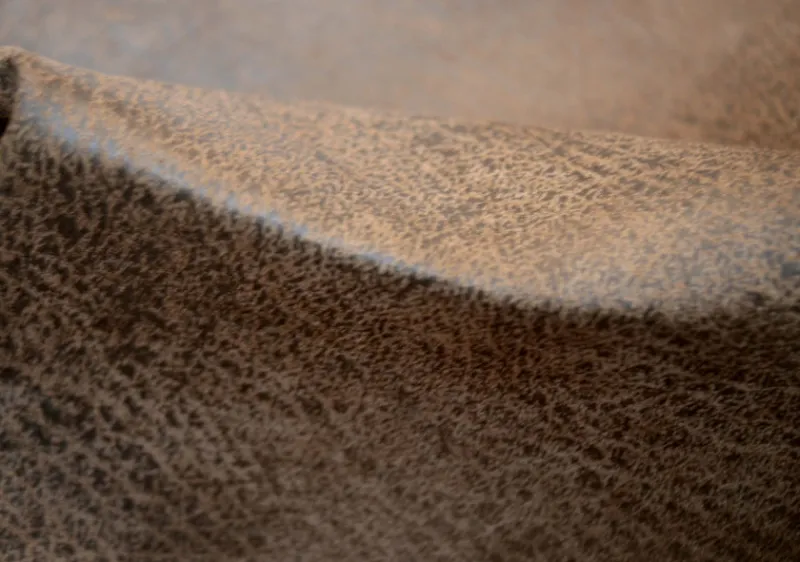 Vagabond Pecan is a neutral vintage brown polyester faux leather fabric from Culp.