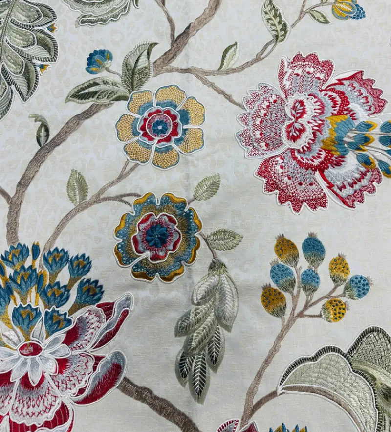 Introducing the Florence Sage Hamilton Fabric, a luxurious addition to your home decor. Embellished with a textured embroidered jacquard floral pattern and delicate tone on tone spots. Makes this fabric is truly one of a kind. Elevate your space with this exclusive and sophisticated design.