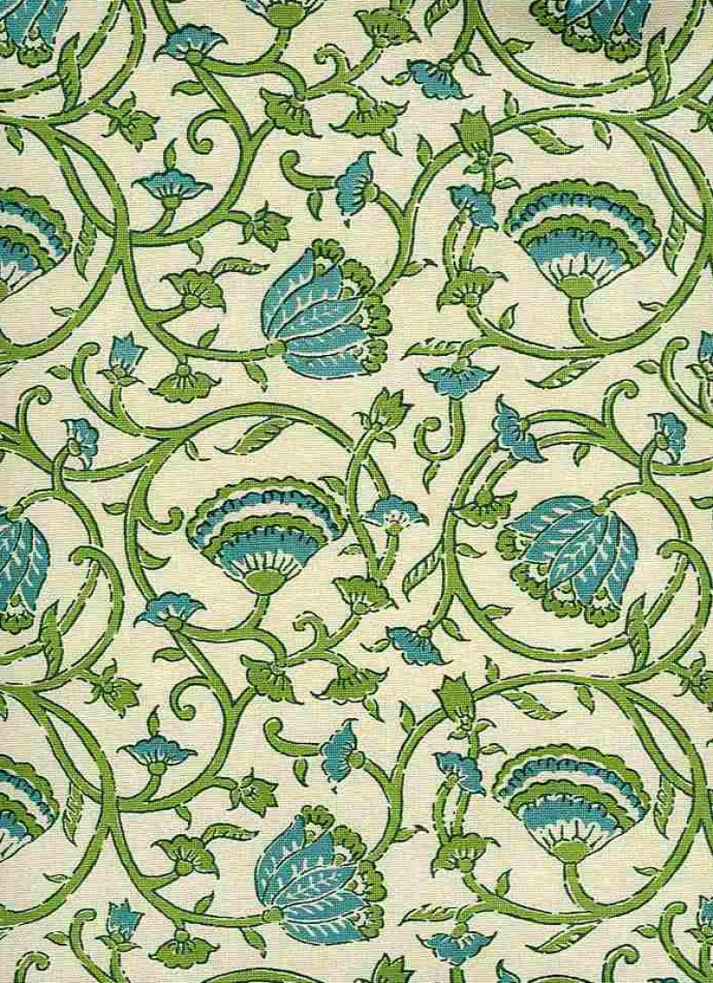 Laura Kiran Tulipvine Handprint Natural Teal Jade Fabric Best