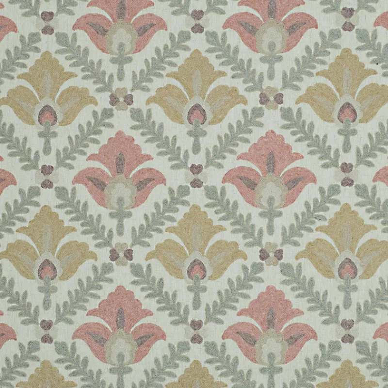 Add a pop of color and whimsy to any room with Angeline Berry P/Kaufmann Fabric. This playful fabric features an embroidered crewel design in delightful shades of pale pink, yellow, and green, creating a charming floral pattern. Enhance your home decor with this unique and vibrant fabric!