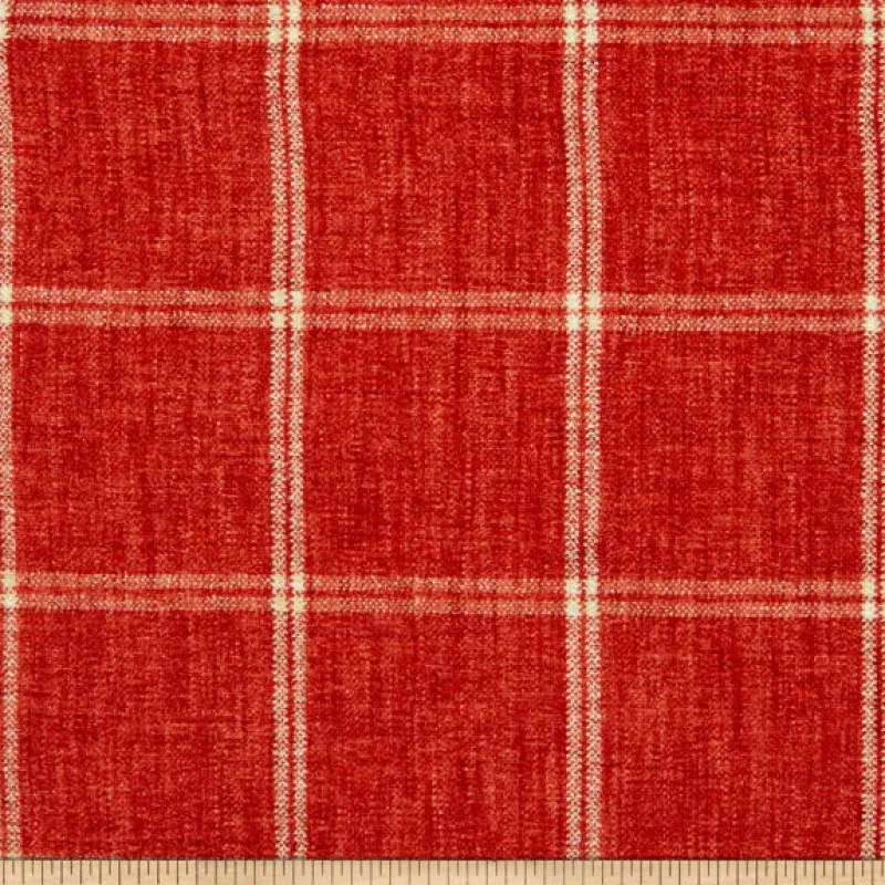 Campbell Strawberry Red Soft Chenille Window Pane Plaid Upholstery P Kaufmann Fabric