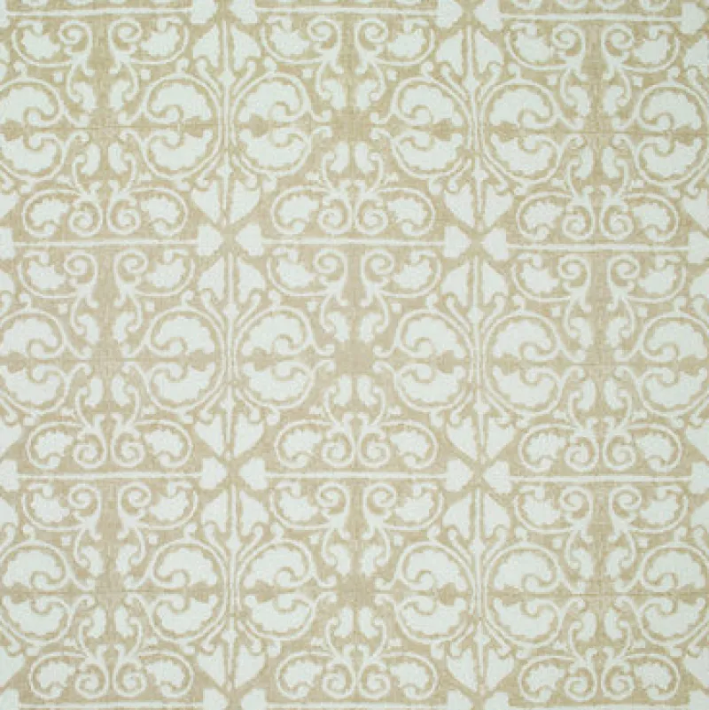 Palazzo Linen Cream Architectural Scroll Tile P Kaufmann Fabric