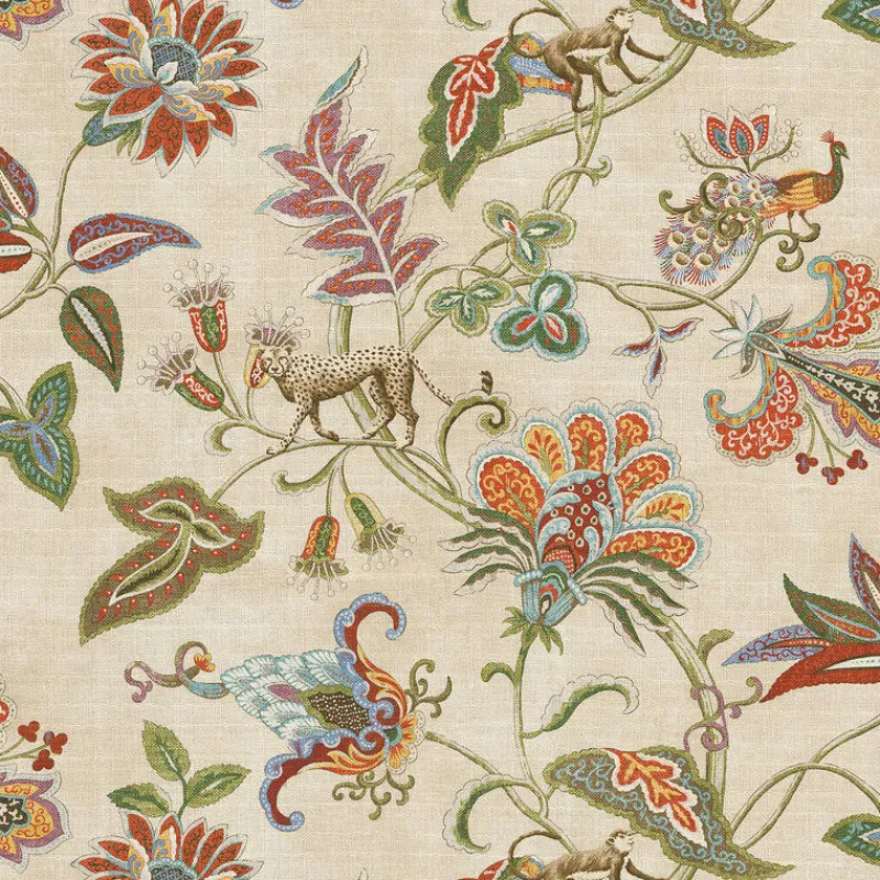 Unleash your adventurous side with our Adventurer Nectar P/K Lifestyles! This unique floral Jacobean fabric features exotic animal prints, perfect for adding a playful touch to any upholstery project. Embrace your wild side with this one-of-a-kind fabric!