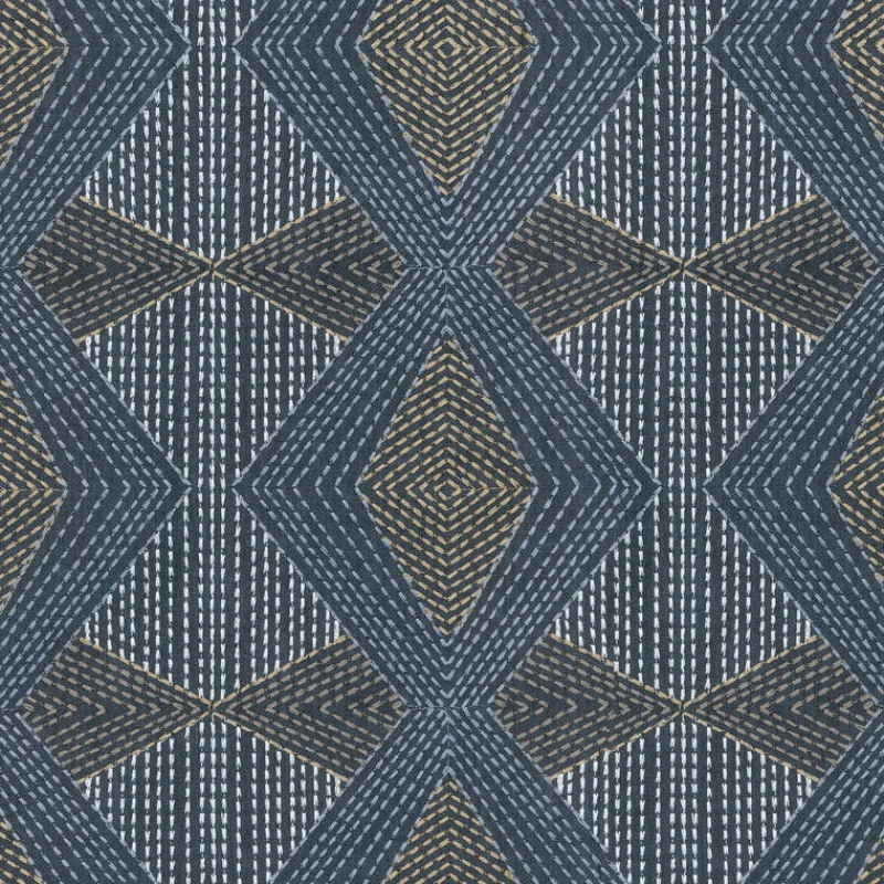 Diamond Dash Embroidery Caspian Blue Embroidered Geometric Patterned Woven PKL Studio Fabric