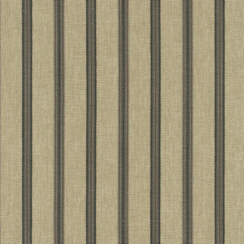 Spice up your home decor with Jodhpur Stripe Chai Fabric! The intricate stripe design in brown, taupe, and grey pops against a charming tan herringbone background. Perfect for adding a touch of playfulness to any room.