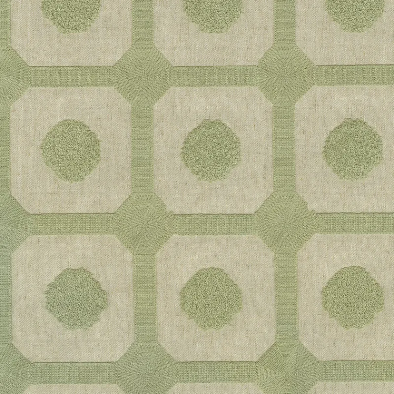 Needle And Thread 410180 Sage Green Tan Geometric Square Dot Embroidered PKL Studio Fabric