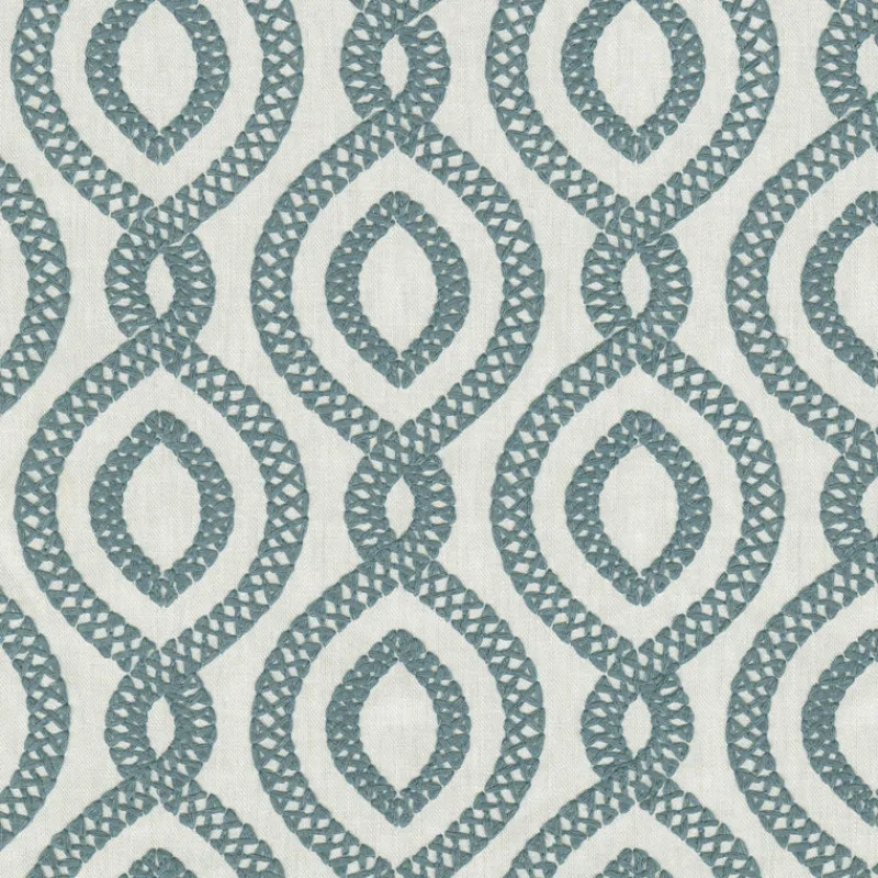 Add a touch of whimsy to your home with the Pavilion EMB Sky P/K Lifestyles Fabric. This unique fabric features a playful blue and white color scheme and an eye-catching embroidered geometric trellis pattern. Create a fun, lively atmosphere in any room with this charming fabric!