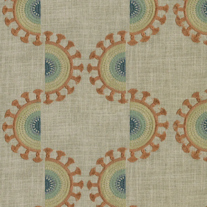 Solara Emb Sunset Pink Embroidered Sun Motif With Ombre Thread Hand Knotted Tassels PKL Studio Fabric