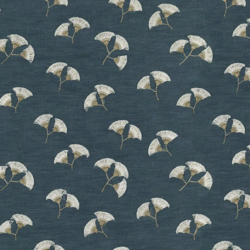 Whispering Leaf Emb 410540 Denim Deep Blue Embroidered Feather Flower PK Lifestyles Fabric