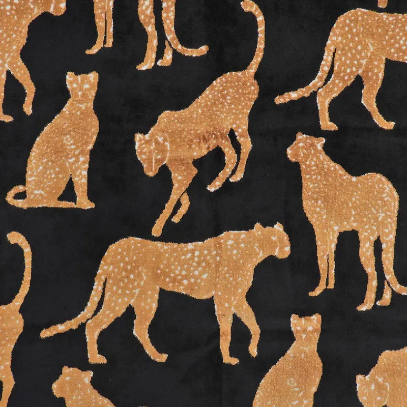 Add a wild touch to your decor with Aniq Ebony Regal Fabric featuring cut velvet cheetahs. Let your space roar with style and personality.