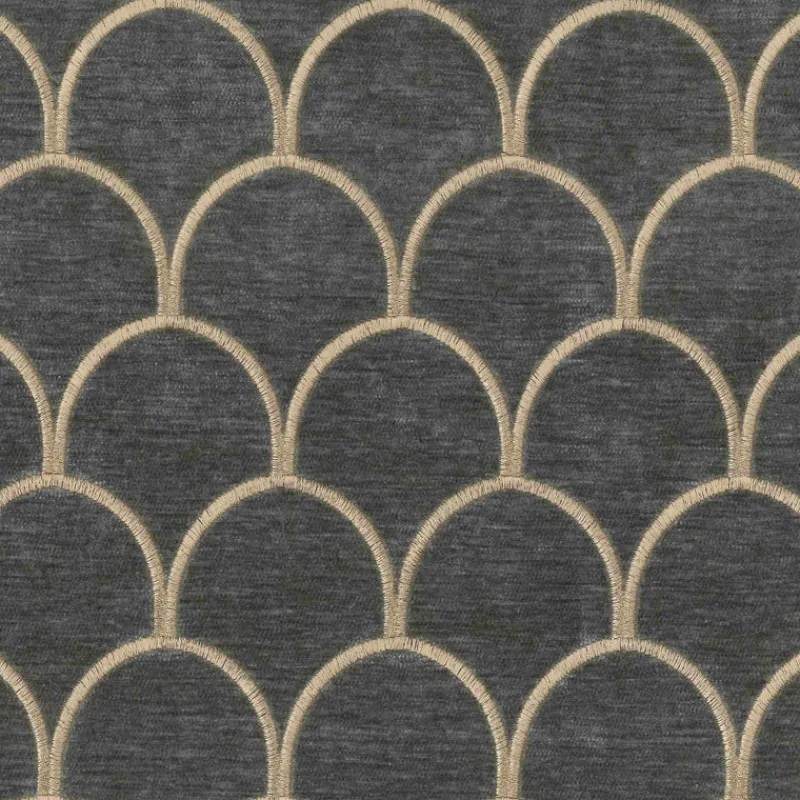 Grey Gold Scallop Embroidery Velvet Arya Smoke Gold Regal Fabric