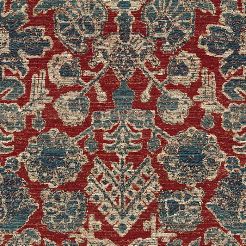 Carley Berry Red Blue Distressed Tapestry Rug Jacquard Chenille Regal Fabric