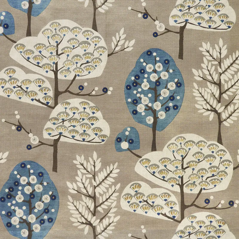 Taupe Blue Floral Tree Print Heavy Cora Rain Regal Fabric