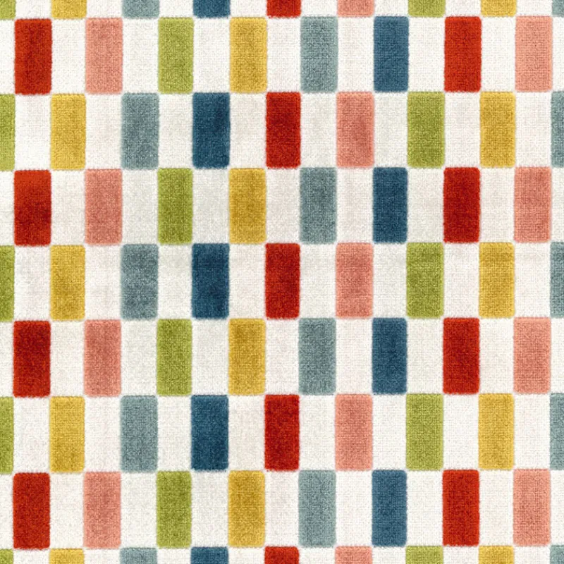 Element Coral Pink Blue Green Yellow Colorful Grid Velvet Regal Fabric