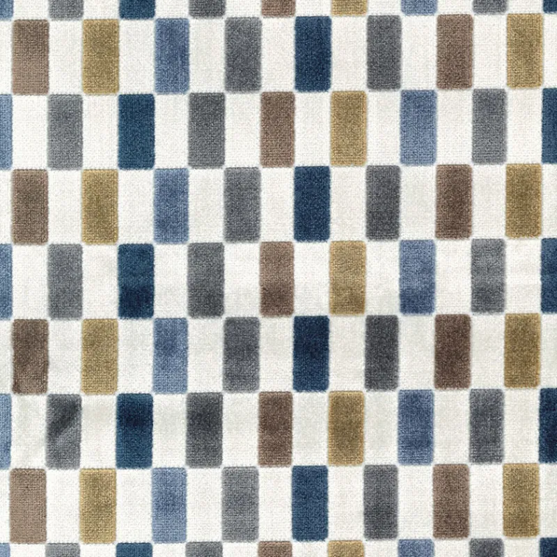 Element Prussian Blue Brown Colorful Grid Velvet Regal Fabric