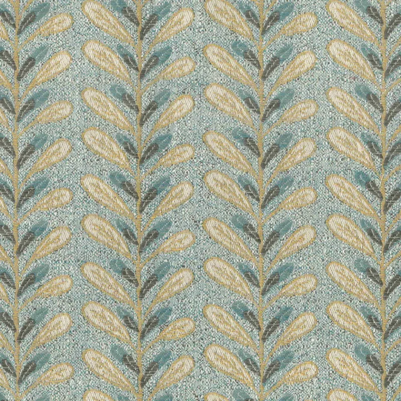 Light Blue Textured Leaf Jacquard Upholstery Hazel Mineral Regal Fabric
