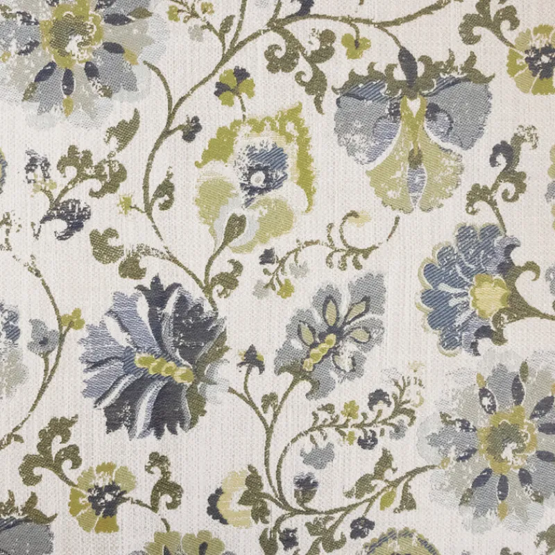 Hollis Lilypad Blue Green Suzani Boho Floral Jacquard Upholstery Regal Fabric