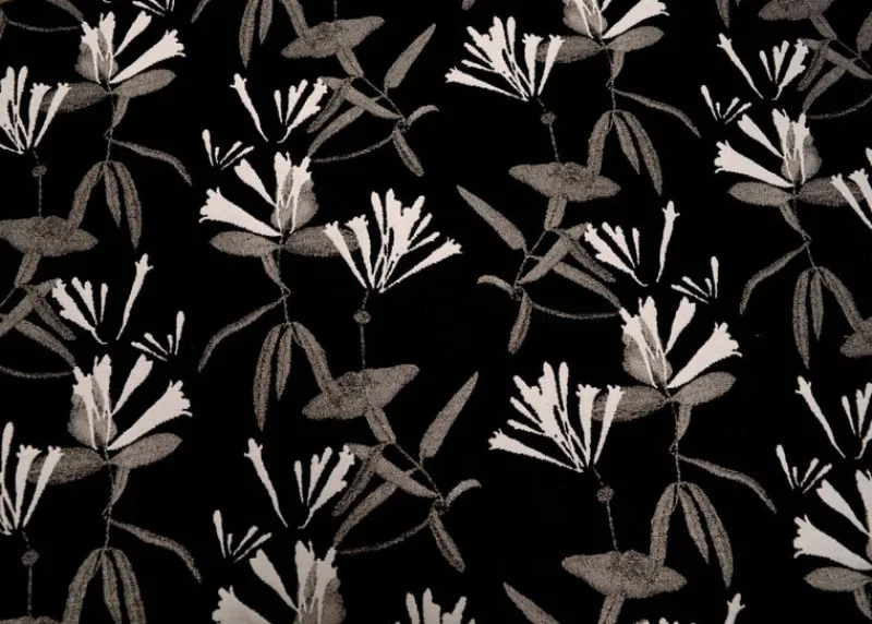 Honeysuckle Black is a fun black and white floral fabric from Regal available and in stock at The Fabric Co. Honeysuckle Black could make an awesome statement in your next upholstery or decorating project!