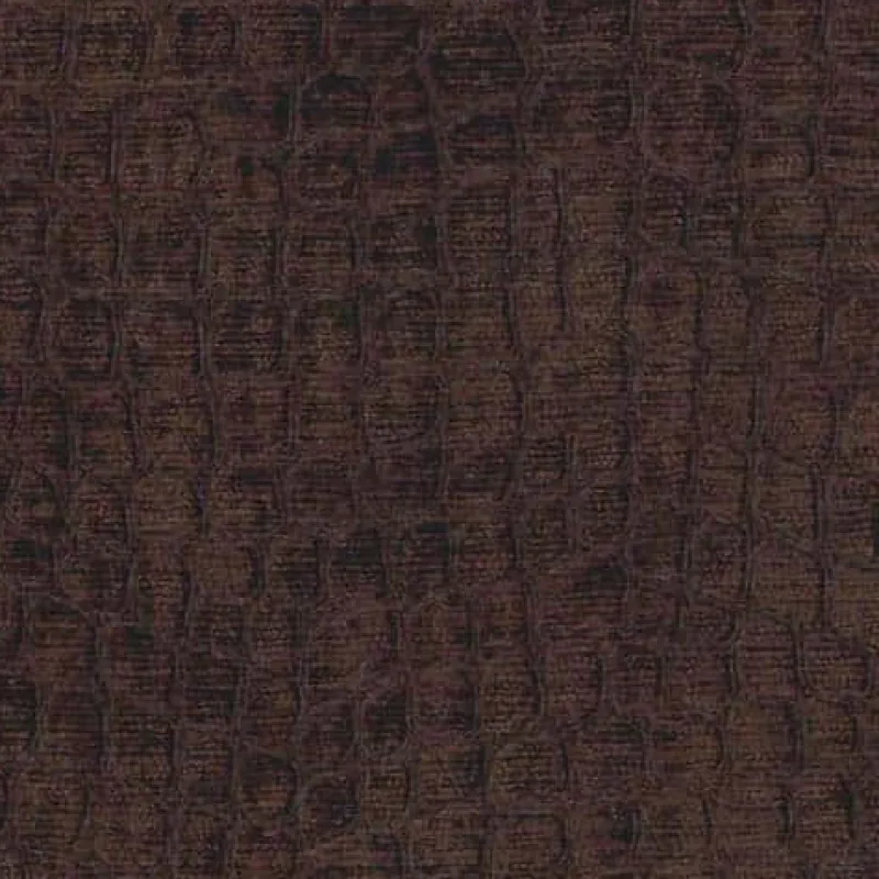 Hook Chocolate is a rich brown shiny chenille crocodile and alligator patterned upholstery fabric from Regal.