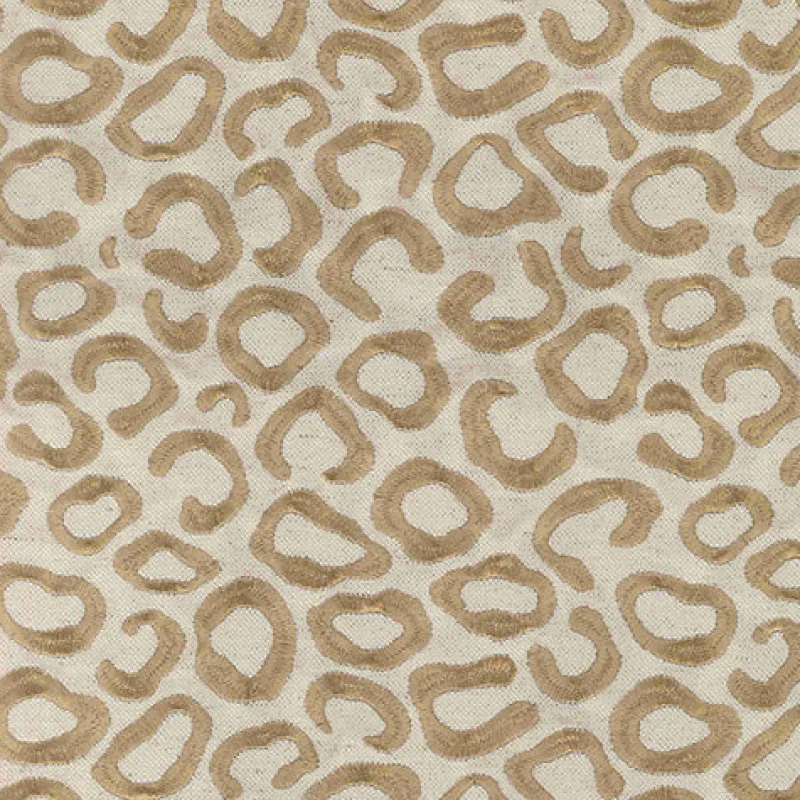 Golden Tan Embroidered Leopard Upholstery Kitty Linen Gold Regal Fabric