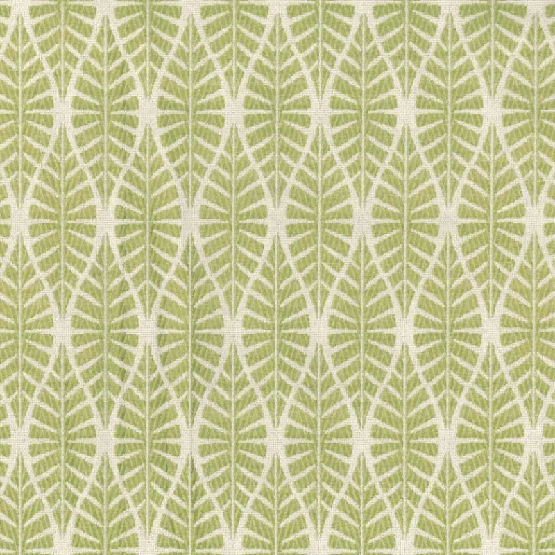 Lara Leaf is a fun contemporary bright green leaf ogee patterned fabric from Regal.
