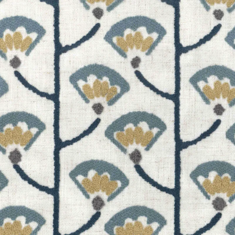 Blue Folk Floral Embroidered Luca River Regal Fabric