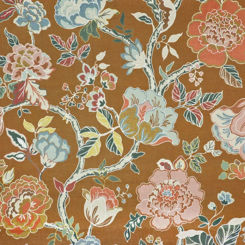 Add a touch of regal charm to your home with Mariko’s Gingerbread fabric, featuring a rich jacobean floral print. Elevate your decor with this luxurious and playful fabric.