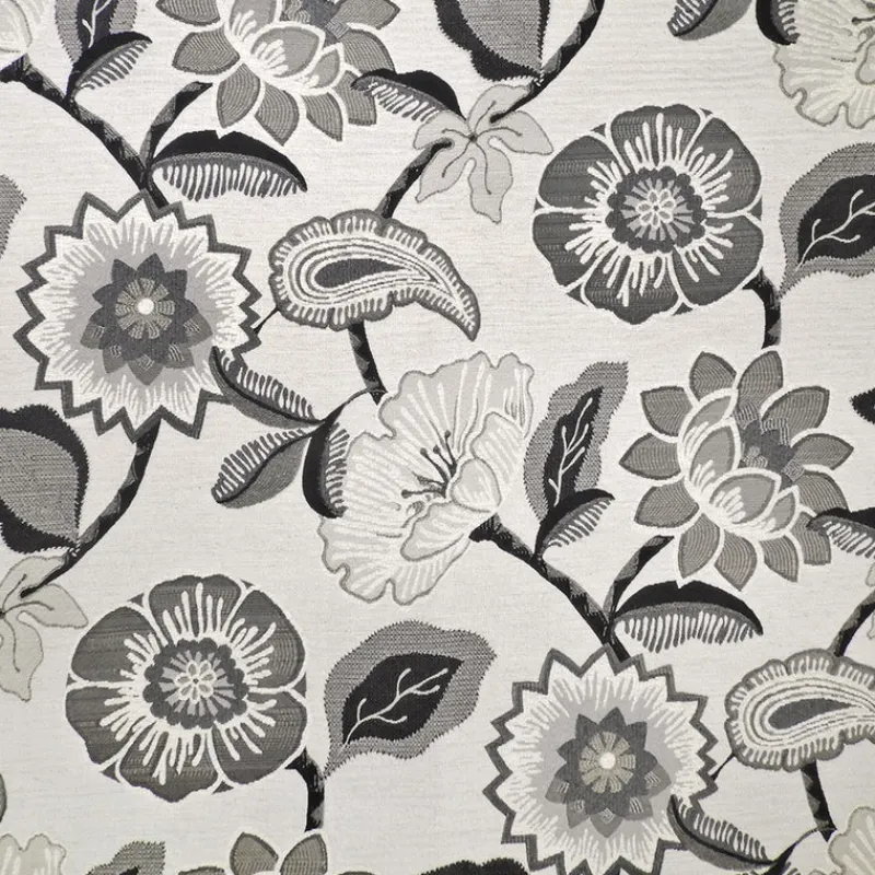 Mazie Black Grey Large Transitional Floral Regal Fabric