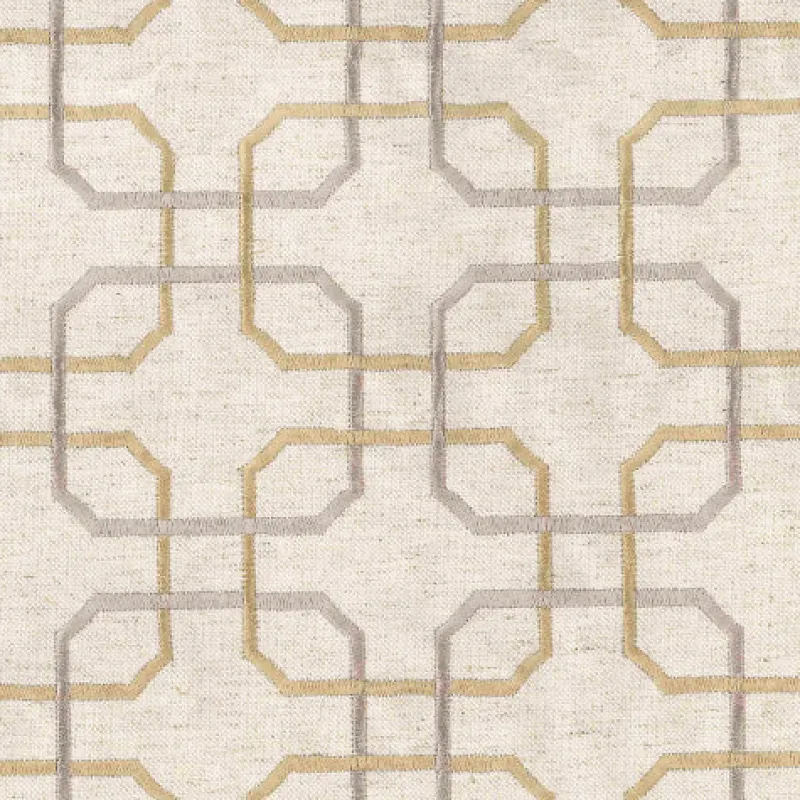 Grey Gold Box Geometric Embroidery Mingle Linen Regal Fabric