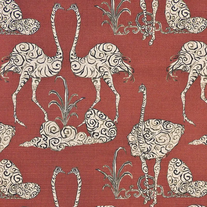 Add some quirk to your decor with Otto Currant Regal Fabric. This unique fabric features a playful ostrich pattern that is sure to make a statement. Perfect for adding a touch of humor to any room.
