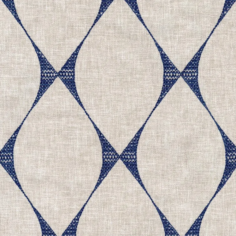 Sprinkle some whimsical charm into your space with Sojourn Indigo Regal Fabric. The embroidered geometric trellis pattern adds a playful and contemporary touch. Elevate your home with a burst of personality.