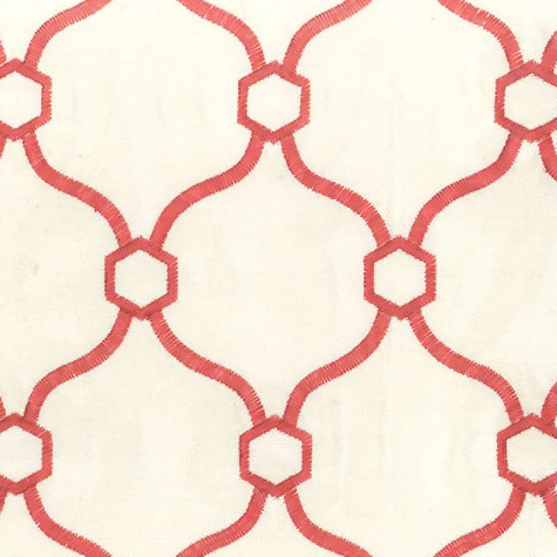 Pink Embroidered Geometric Quatrefoil Vera Coral Regal Fabric