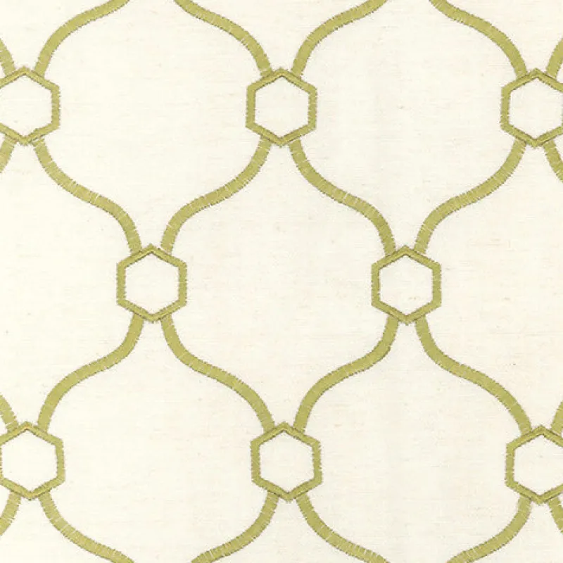 Green Embroidered Geometric Quatrefoil Vera Grass Regal Fabric