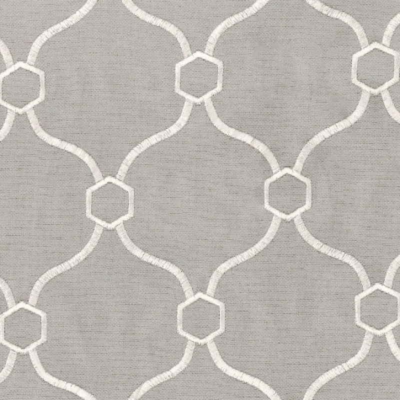 Grey Silver Embroidered Geometric Quatrefoil Vera Pewter Regal Fabric