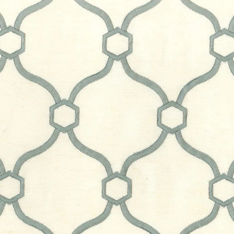 Light Turquoise Blue Embroidered Geometric Quatrefoil Vera Spa Regal Fabric