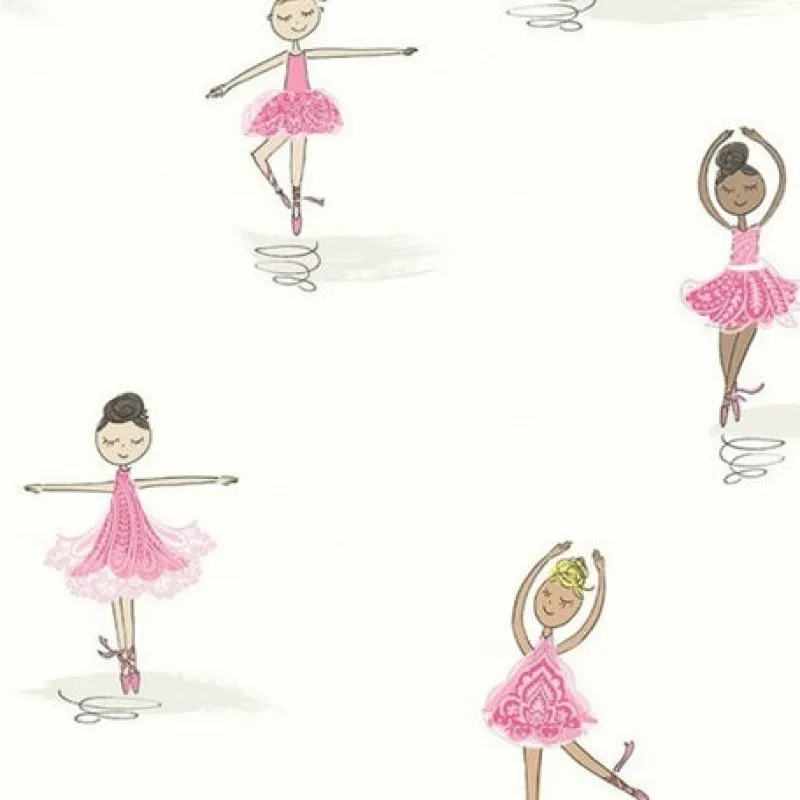 Little pink dancers float, twirl, and spin across the wall in this cute wallpaper perfect for aspring ballerinas.