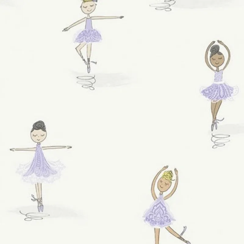 Little light purple dancers float, twirl, and spin across the wall in this cute wallpaper perfect for aspring ballerinas.