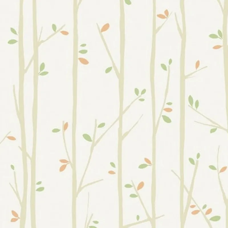 Tiny orange and green leaves scatter between tall trees in this cute simple wallpaper.