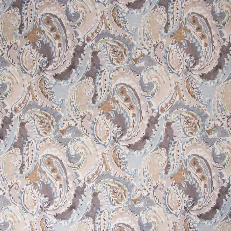 Carlisia Delft is a blue, grey and brown pastel paisley print. This fabric is a beautiful way to bring natural colors into your house with the classic touch of paisley.