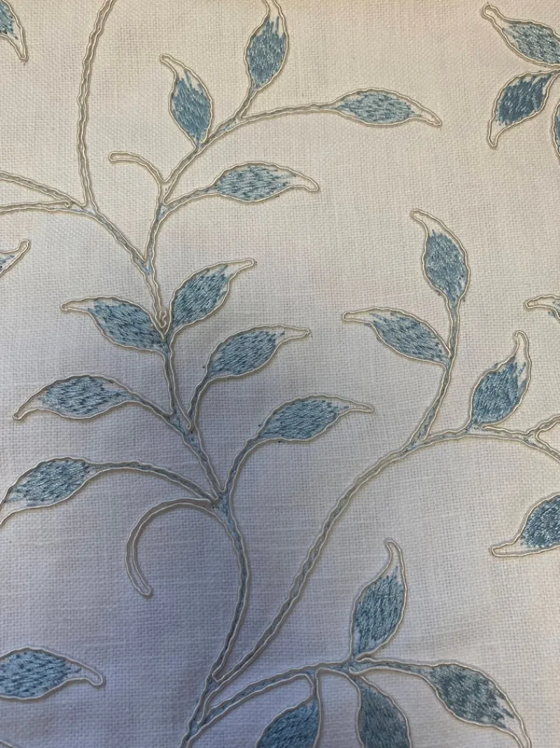 Page Turner Topaz Light Blue White Embroidered Leaves Swavelle Mill Creek Fabric