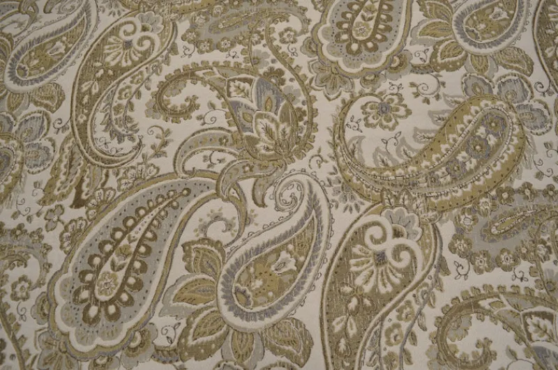 Unleash your inner vintage diva with CocoBelle Taupe from Swavelle Mill Creek Fabric. This elegant fabric features an alluring gold, taupe, grey paisley pattern. Perfect for adding a classic felling to any project. (So vintage, you’ll want to break out the poodle skirts!)