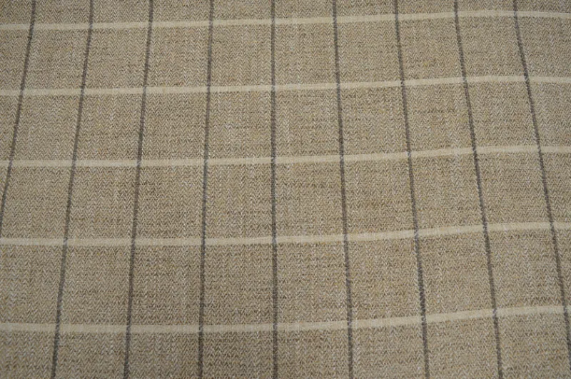 Elevate your interior decor with the Crossville Wheat Upholstery Fabric by Culp. This sophisticated taupe and white plaid fabric brings a touch of elegance and modernity to any living space. Ideal for a variety of applications, from upholstering sofas and chairs to creating stunning throw pillows, this fabric is versatile enough to complement both traditional and contemporary styles.