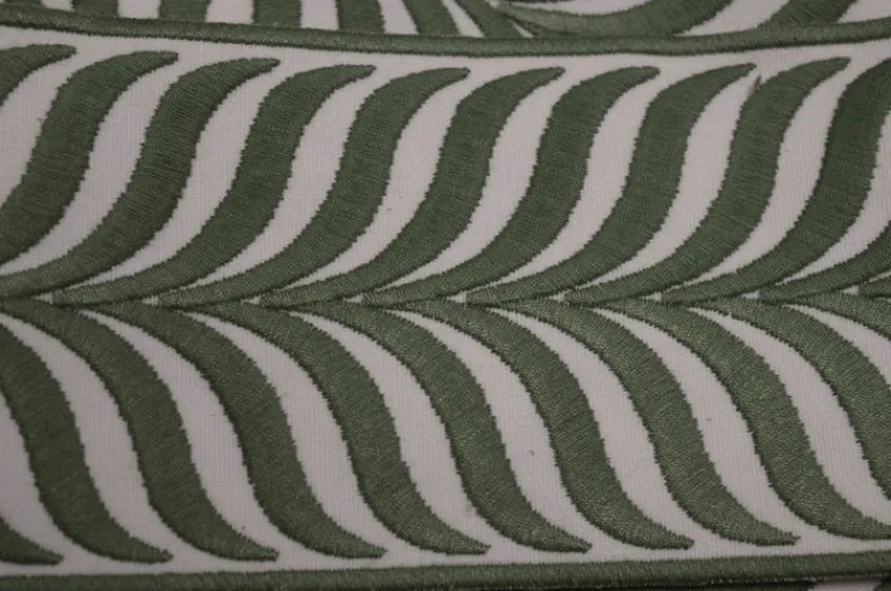 Add a touch of nature to any project with the Crest Leaf Tape Trim. This unique, green tape trim features a playful leafy pattern, perfect for adding a whimsical touch to any crafting or sewing project. Embrace your creative side and let your imagination run wild with this quirky and fun trim.