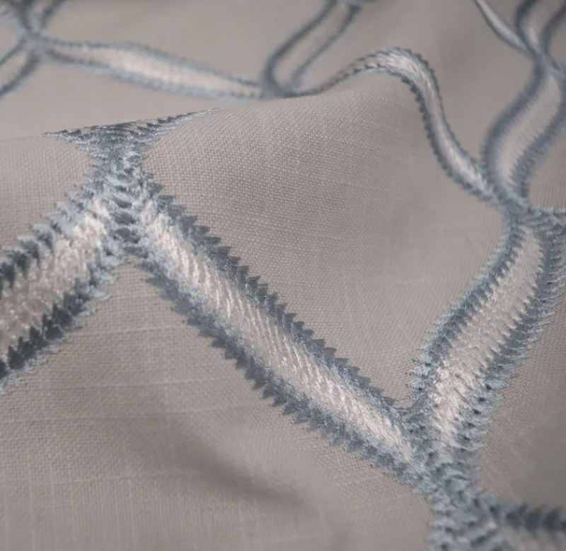 Samuel Cloud is a blue and white embroidered fabric. This is a bright and inviting embroidery that is sure to bring an elegance to any room